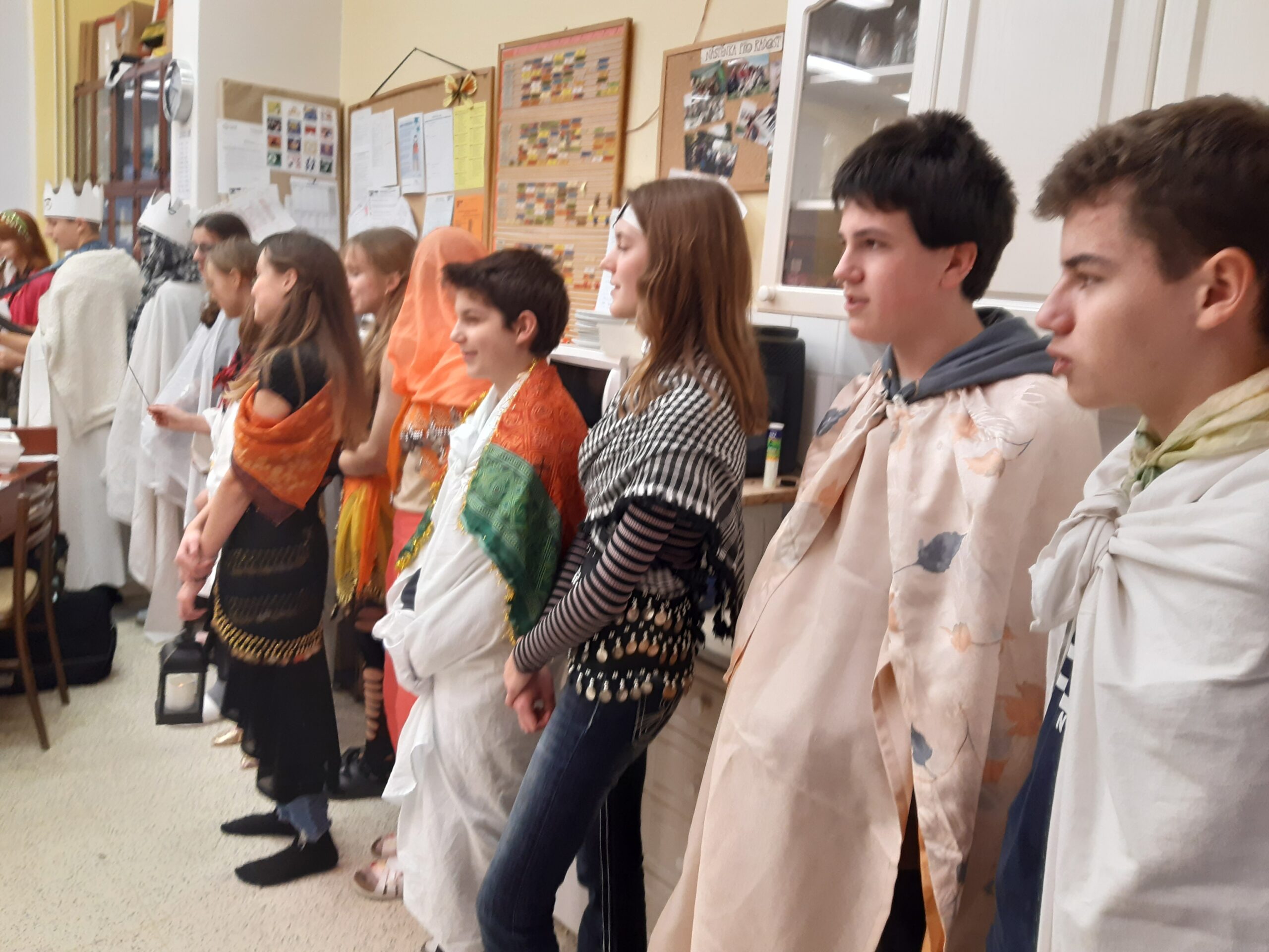 Letos jsme se studenty španělštiny z tercie zahájili nový kalendářní rok 2022 tím, že jsme po roční pauze znovu oživili tradici na naší škole a všechny studenty i učitele jsme potěšili návštěvou Melichara, Kašpara a Baltazara. Nechyběla pážata a průvod dvořanů, muzikanti, zpěv koled a vůně kadidla (za natrénování zpěvu ve španělském jazyce i přes začátečnickou úroveň studentů, jakožto za hru na hudební nástroje, skvělé kostýmy a propriety patří všem zúčastněným veliké díky!)