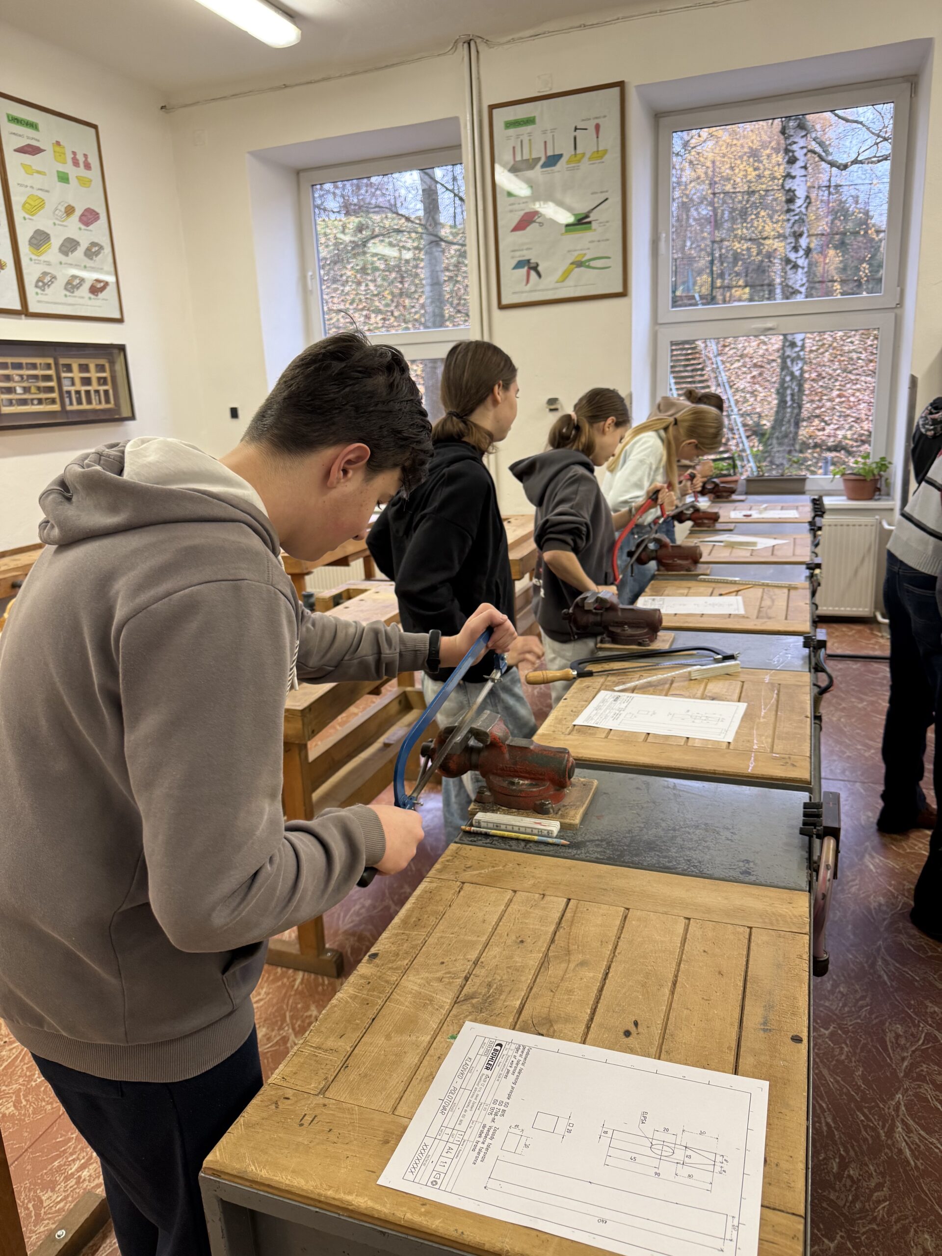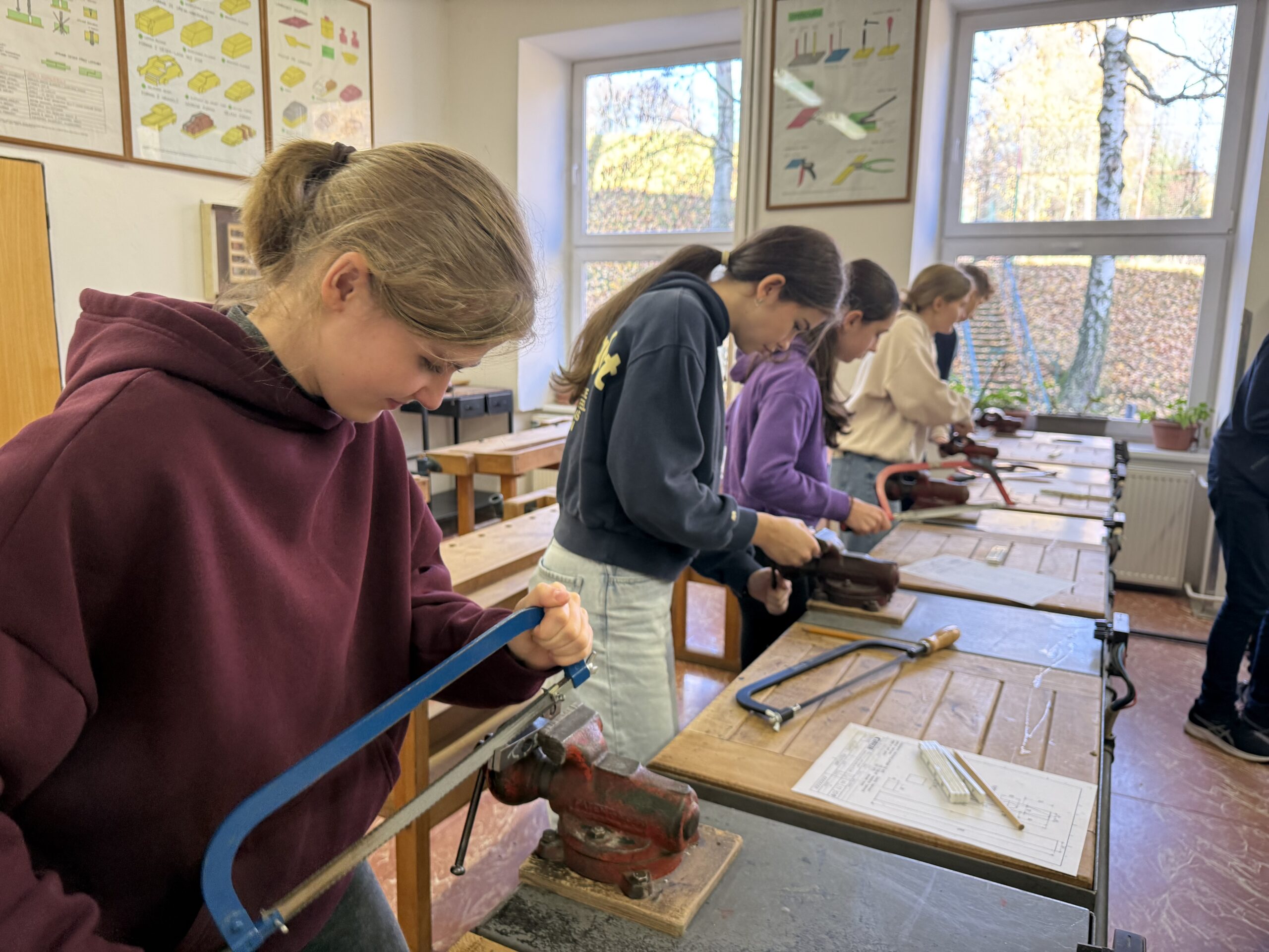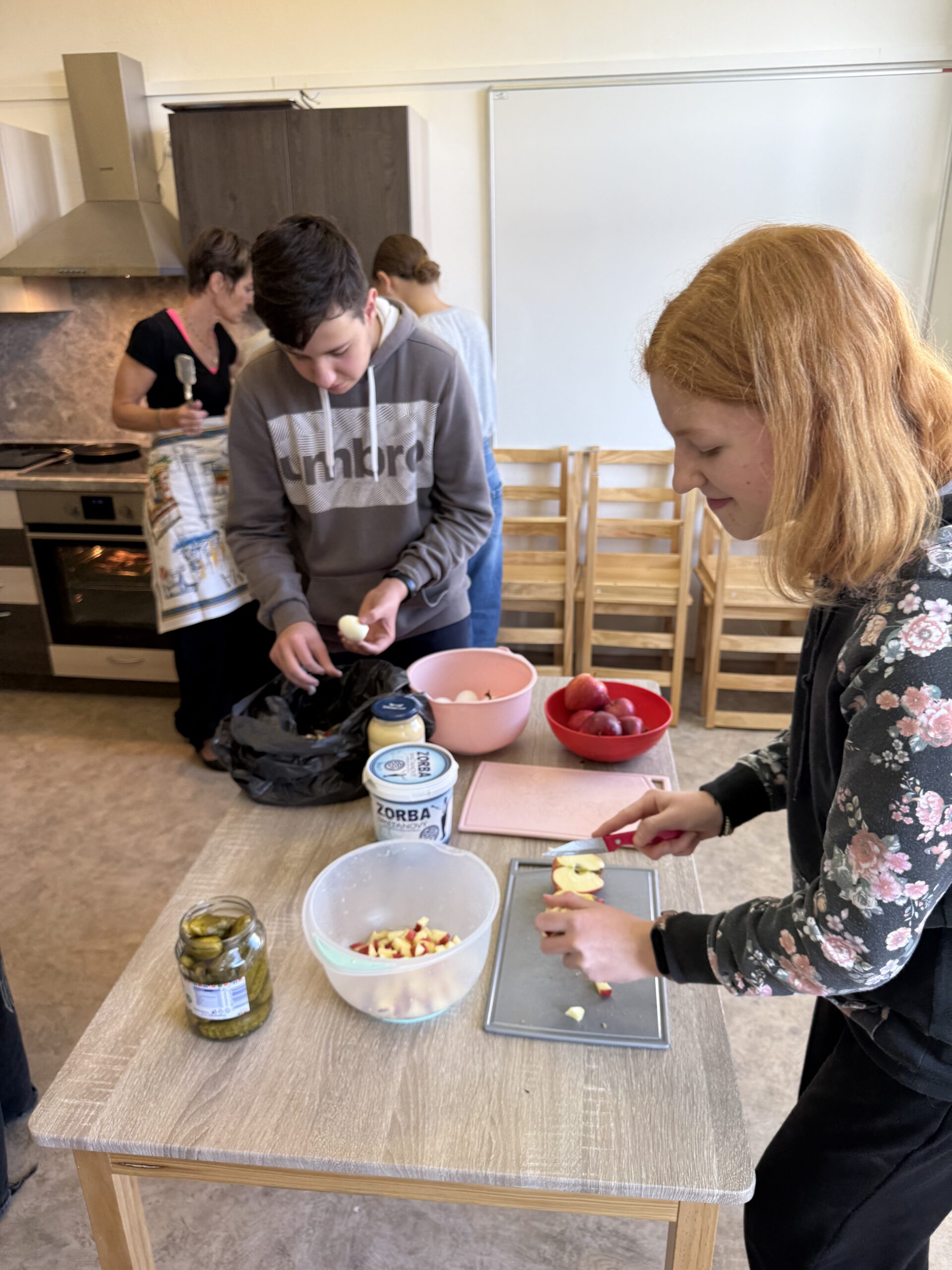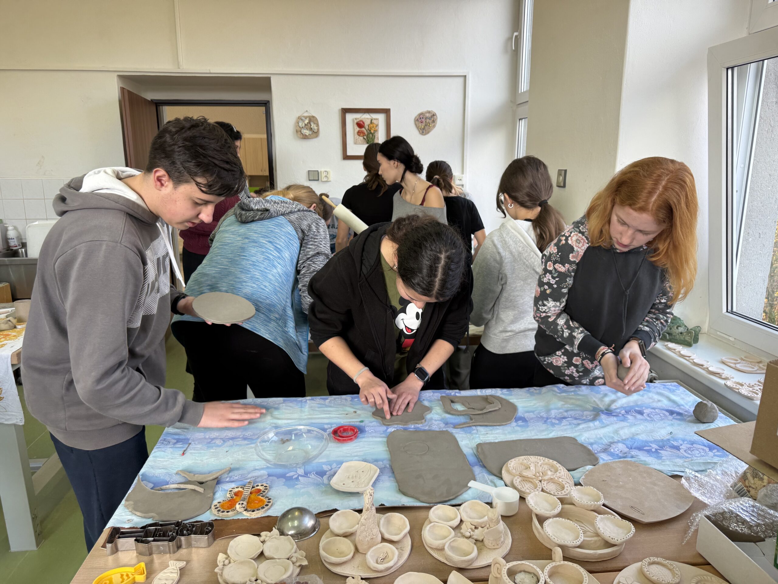 V úterý 4. 11. 2025 strávili studenti kvarty skvělý den na ZŠ ve Výprachticích, kde si vyzkoušeli práci rukama a nejen hlavou! Věnovali se práci s hlínou, kde si každý dle své fantazie vytvořil originální výrobek, často i jako malý dárek pro své blízké. Dílna s kovem a dřevem ukázala, že od práce mohou bolet i ruce, ale výsledek stál za to. Každý si vyrobil svoje kladívko! Dopoledne bylo završeno společnou přípravou oběda. Na menu bylo kuře s bramborovým salátem a jako sladká tečka palačinky.