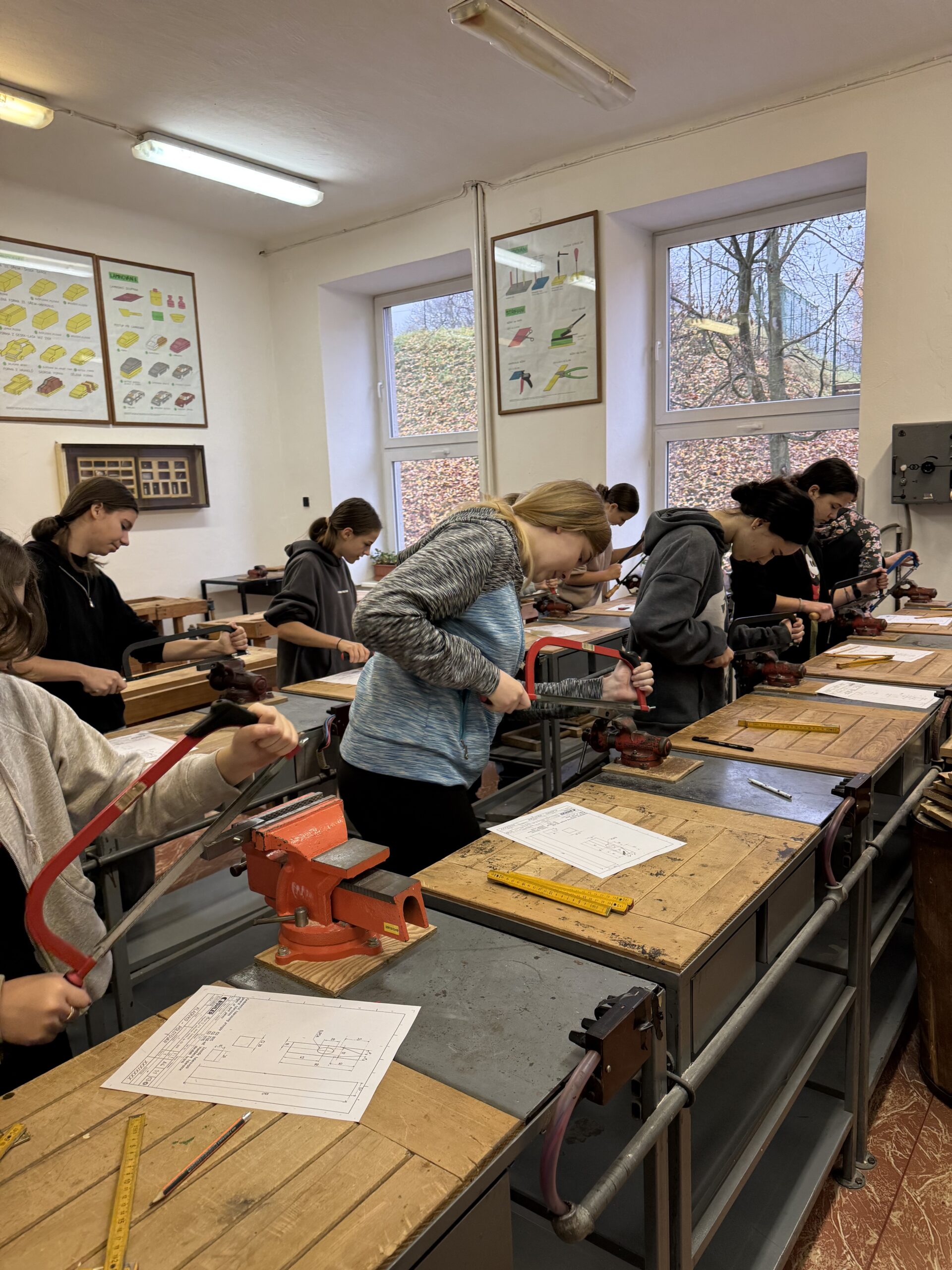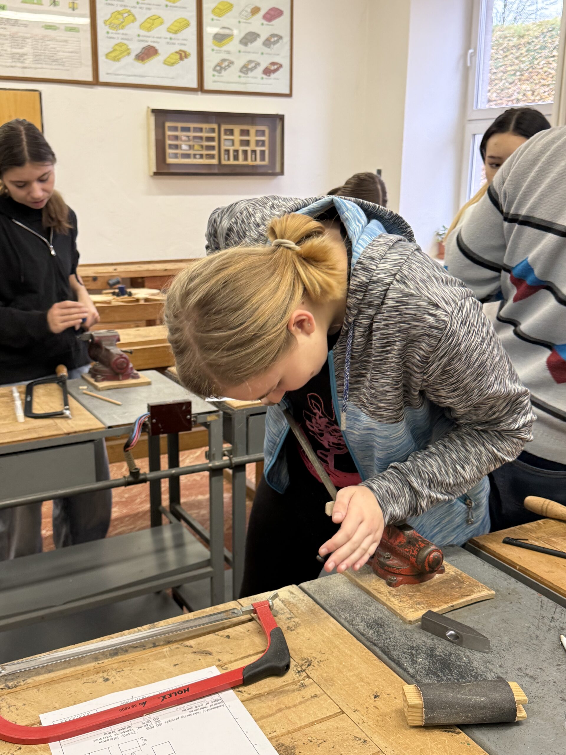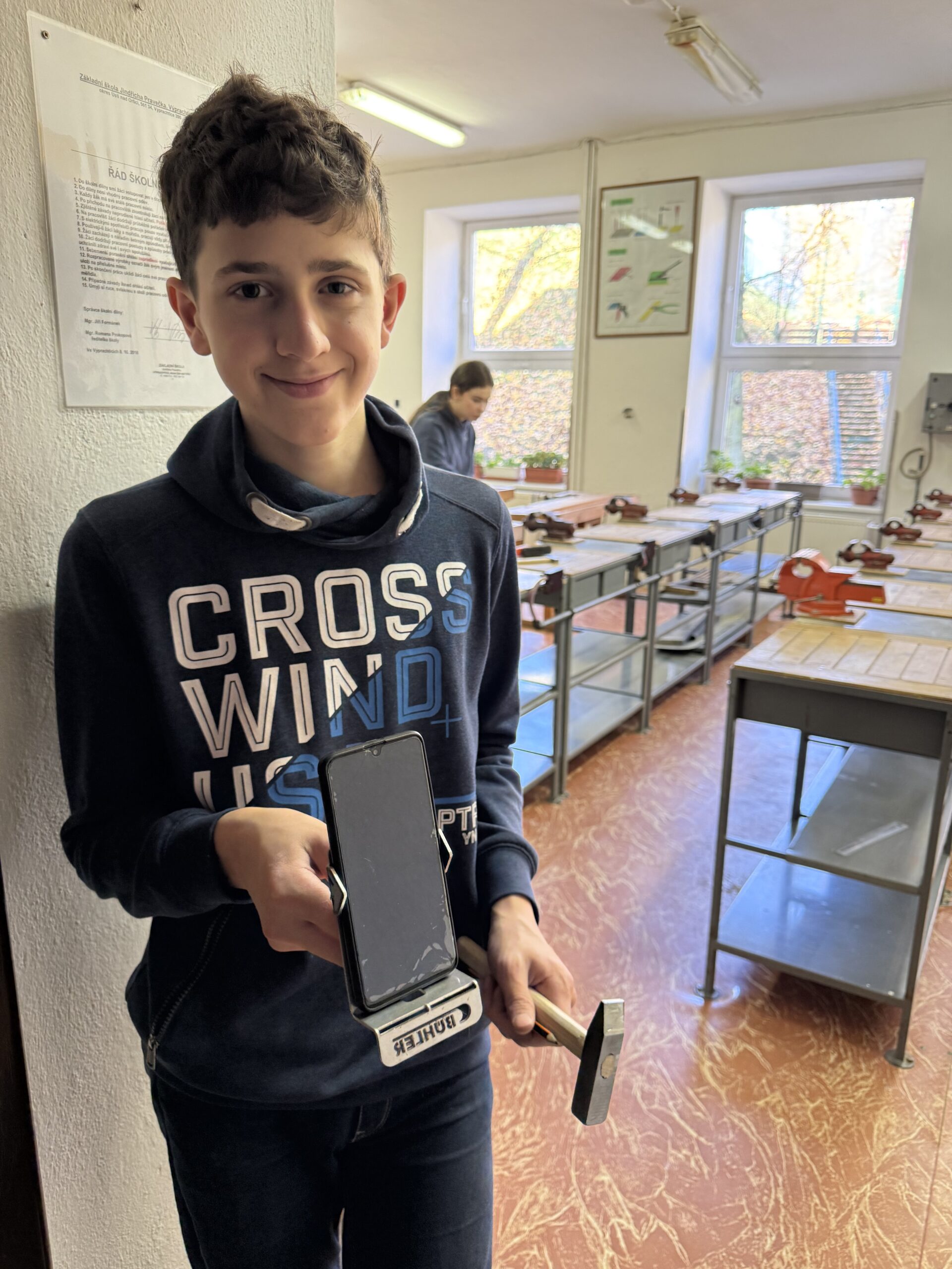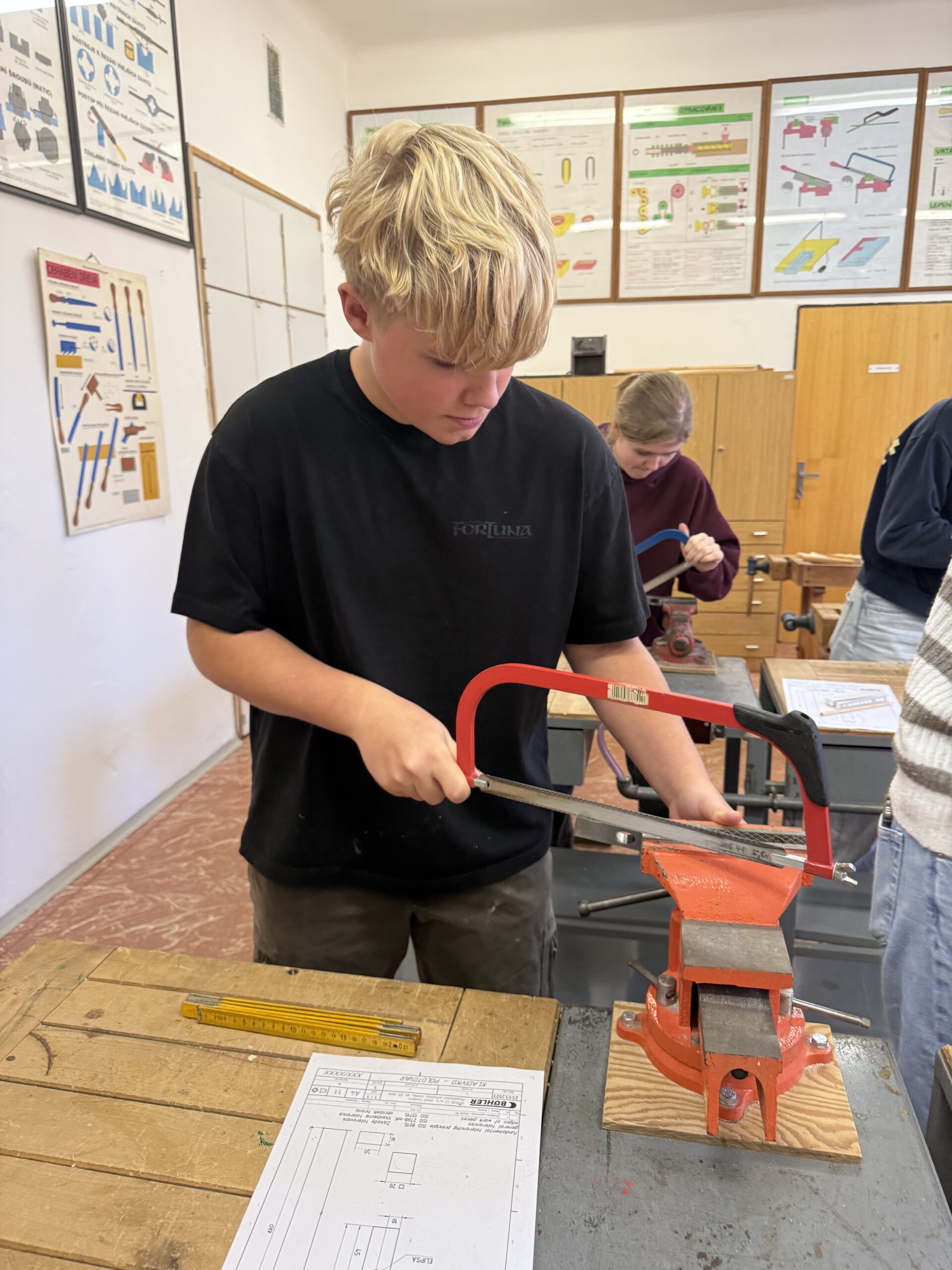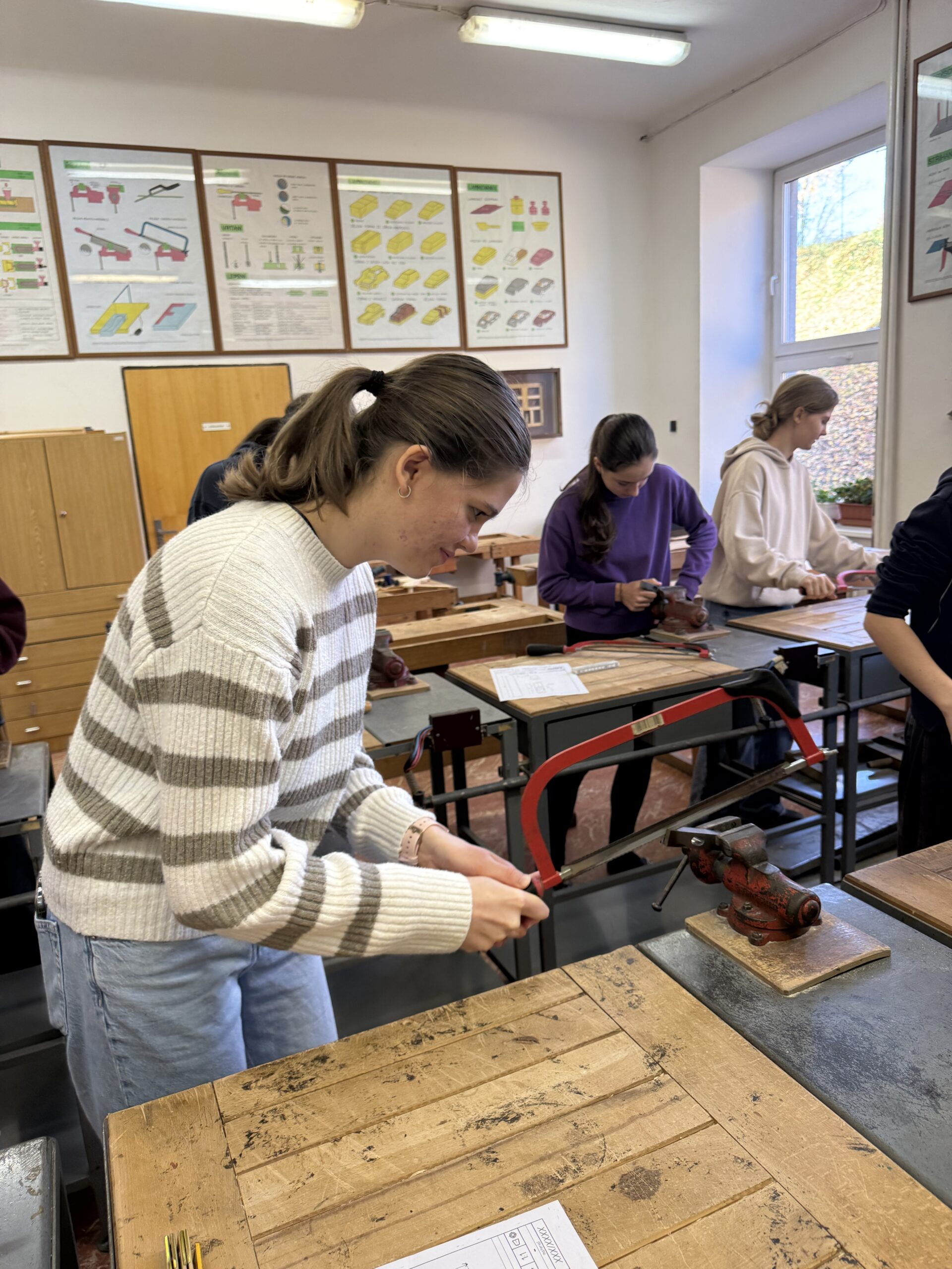 V úterý 4. 11. 2025 strávili studenti kvarty skvělý den na ZŠ ve Výprachticích, kde si vyzkoušeli práci rukama a nejen hlavou! Věnovali se práci s hlínou, kde si každý dle své fantazie vytvořil originální výrobek, často i jako malý dárek pro své blízké. Dílna s kovem a dřevem ukázala, že od práce mohou bolet i ruce, ale výsledek stál za to. Každý si vyrobil svoje kladívko! Dopoledne bylo završeno společnou přípravou oběda. Na menu bylo kuře s bramborovým salátem a jako sladká tečka palačinky.