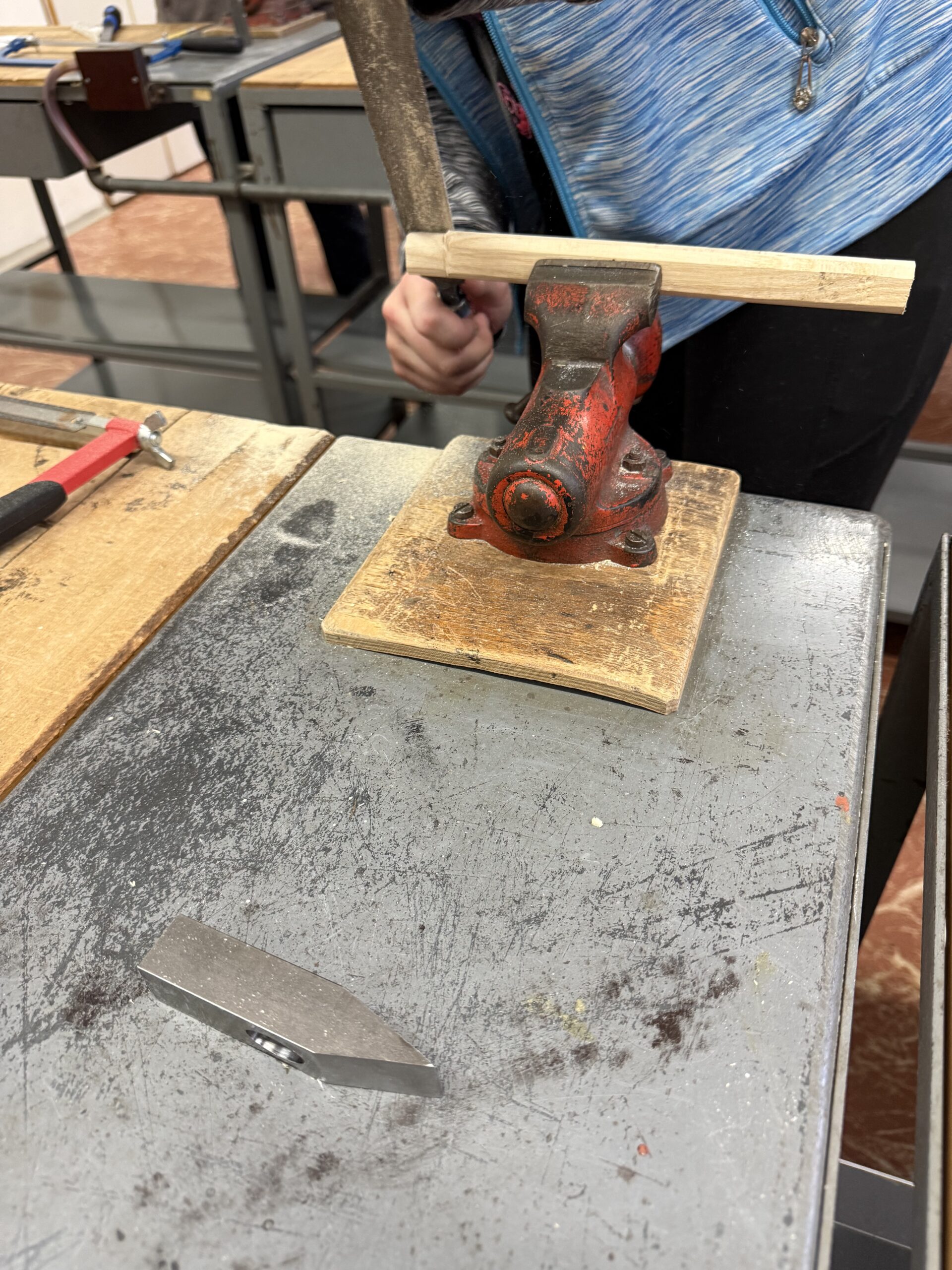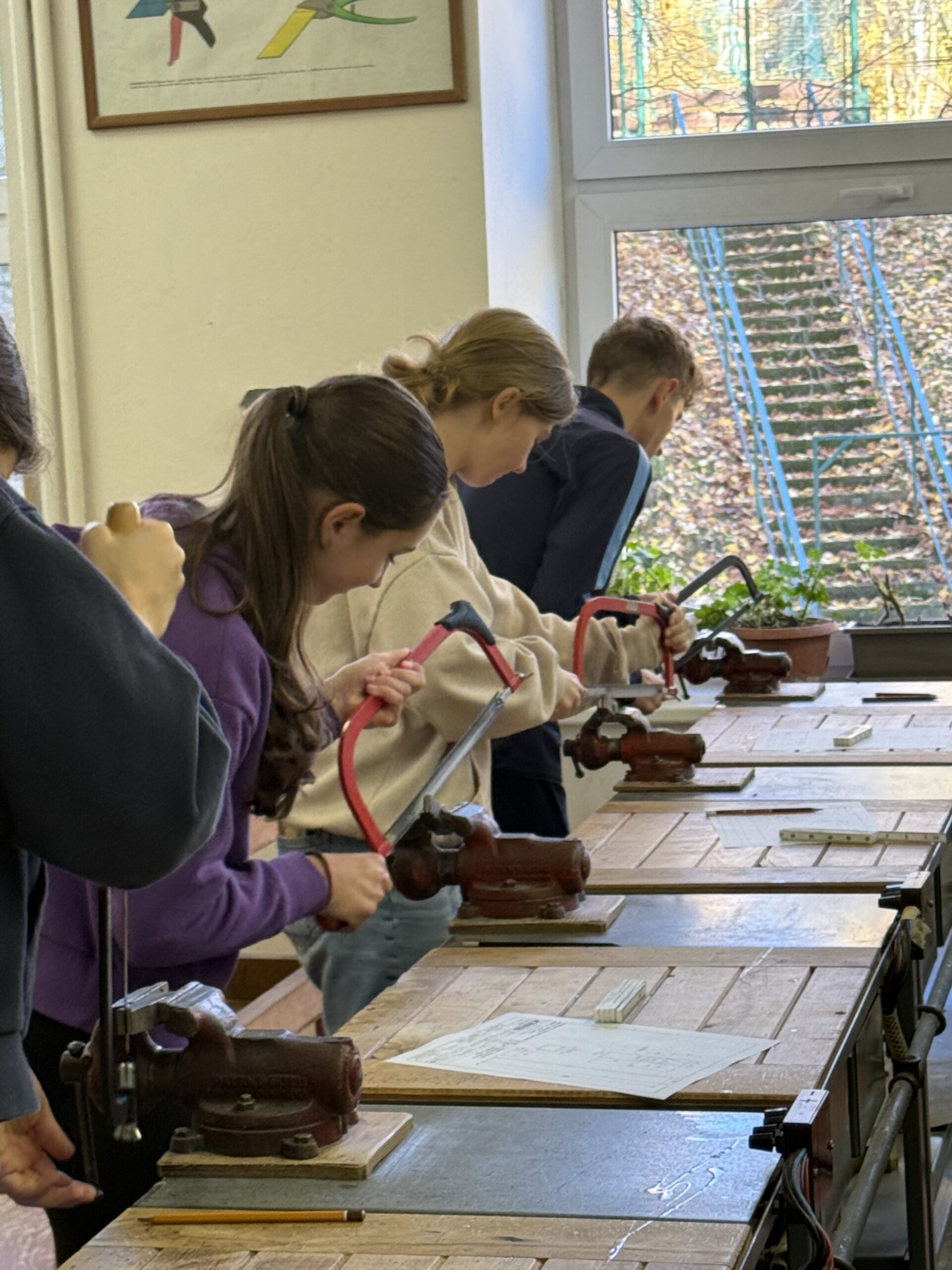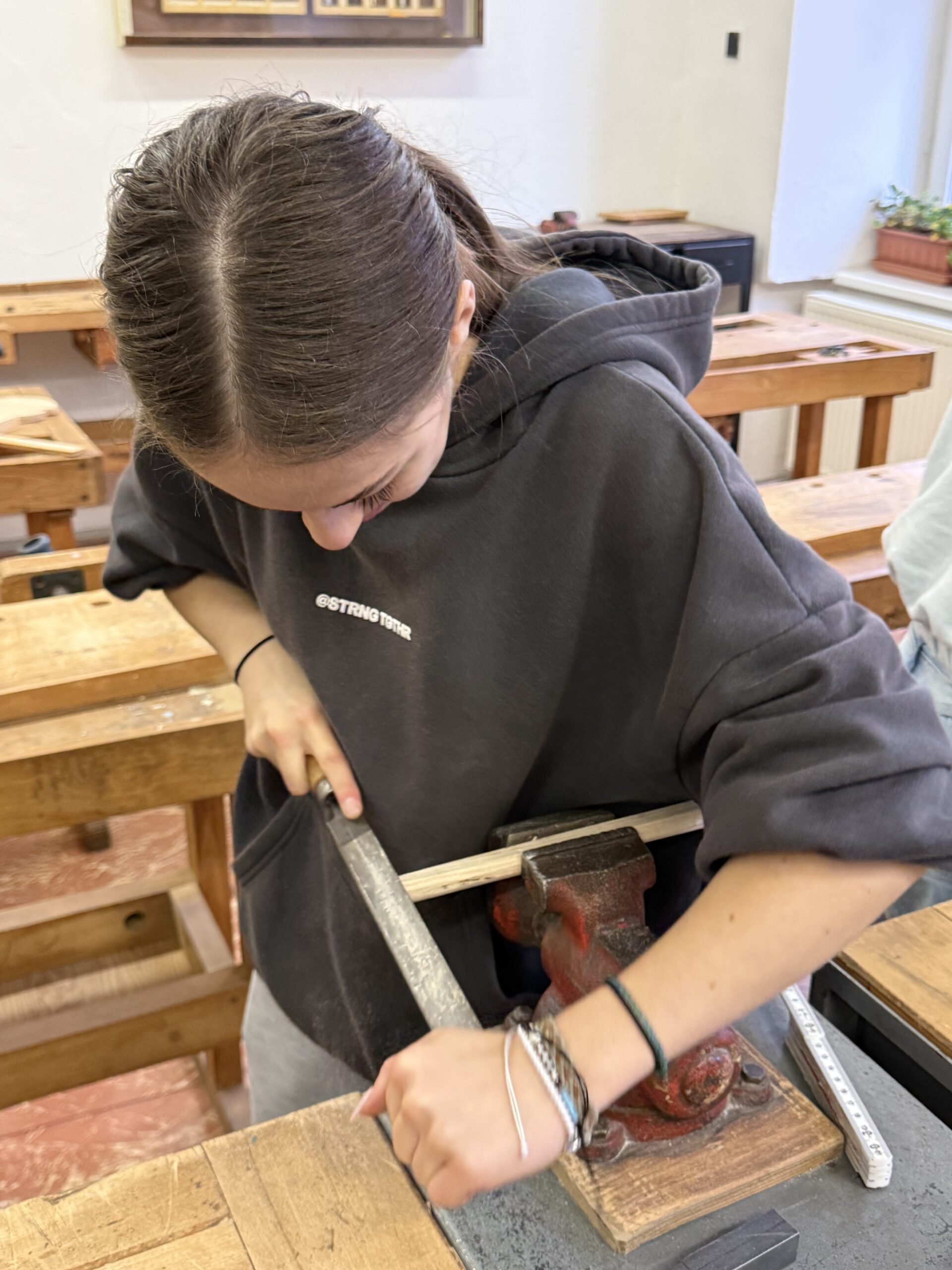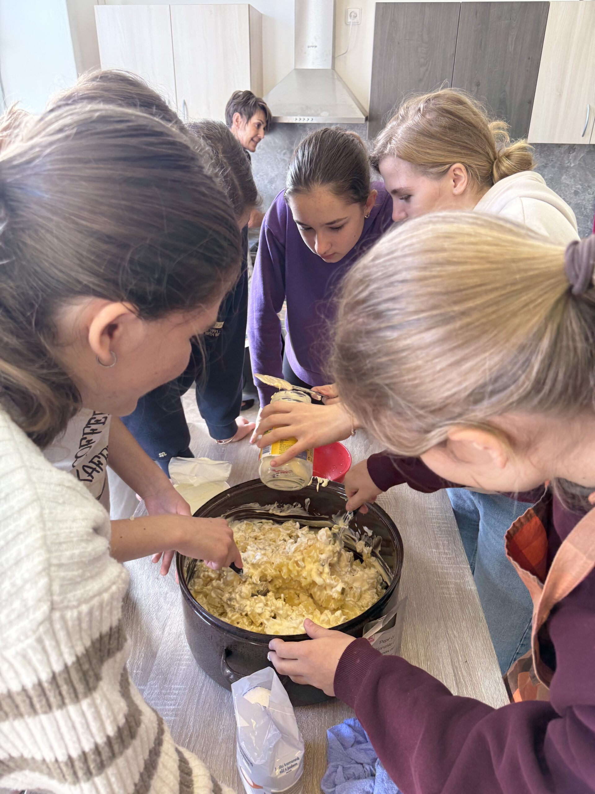 V úterý 4. 11. 2025 strávili studenti kvarty skvělý den na ZŠ ve Výprachticích, kde si vyzkoušeli práci rukama a nejen hlavou! Věnovali se práci s hlínou, kde si každý dle své fantazie vytvořil originální výrobek, často i jako malý dárek pro své blízké. Dílna s kovem a dřevem ukázala, že od práce mohou bolet i ruce, ale výsledek stál za to. Každý si vyrobil svoje kladívko! Dopoledne bylo završeno společnou přípravou oběda. Na menu bylo kuře s bramborovým salátem a jako sladká tečka palačinky.