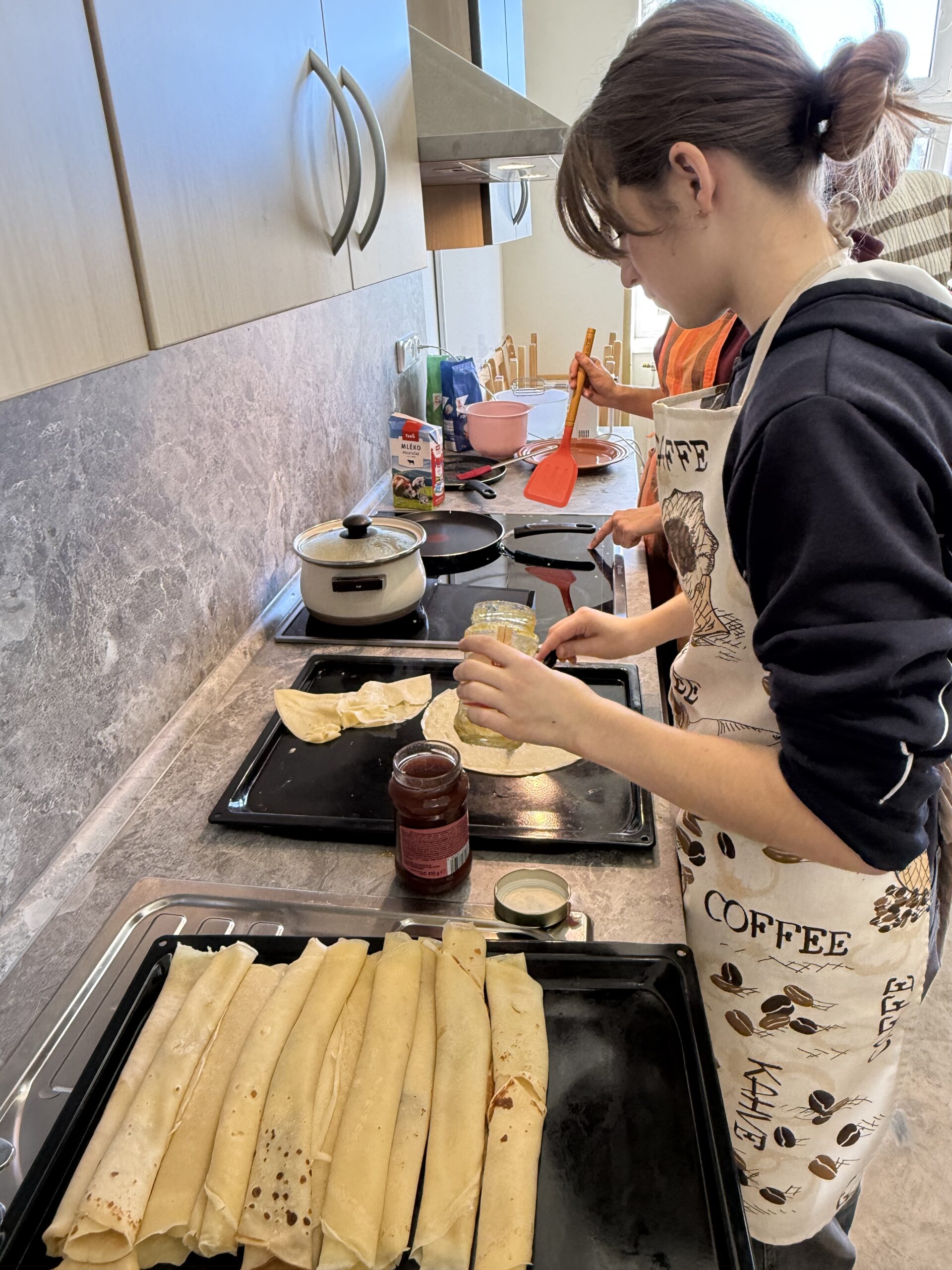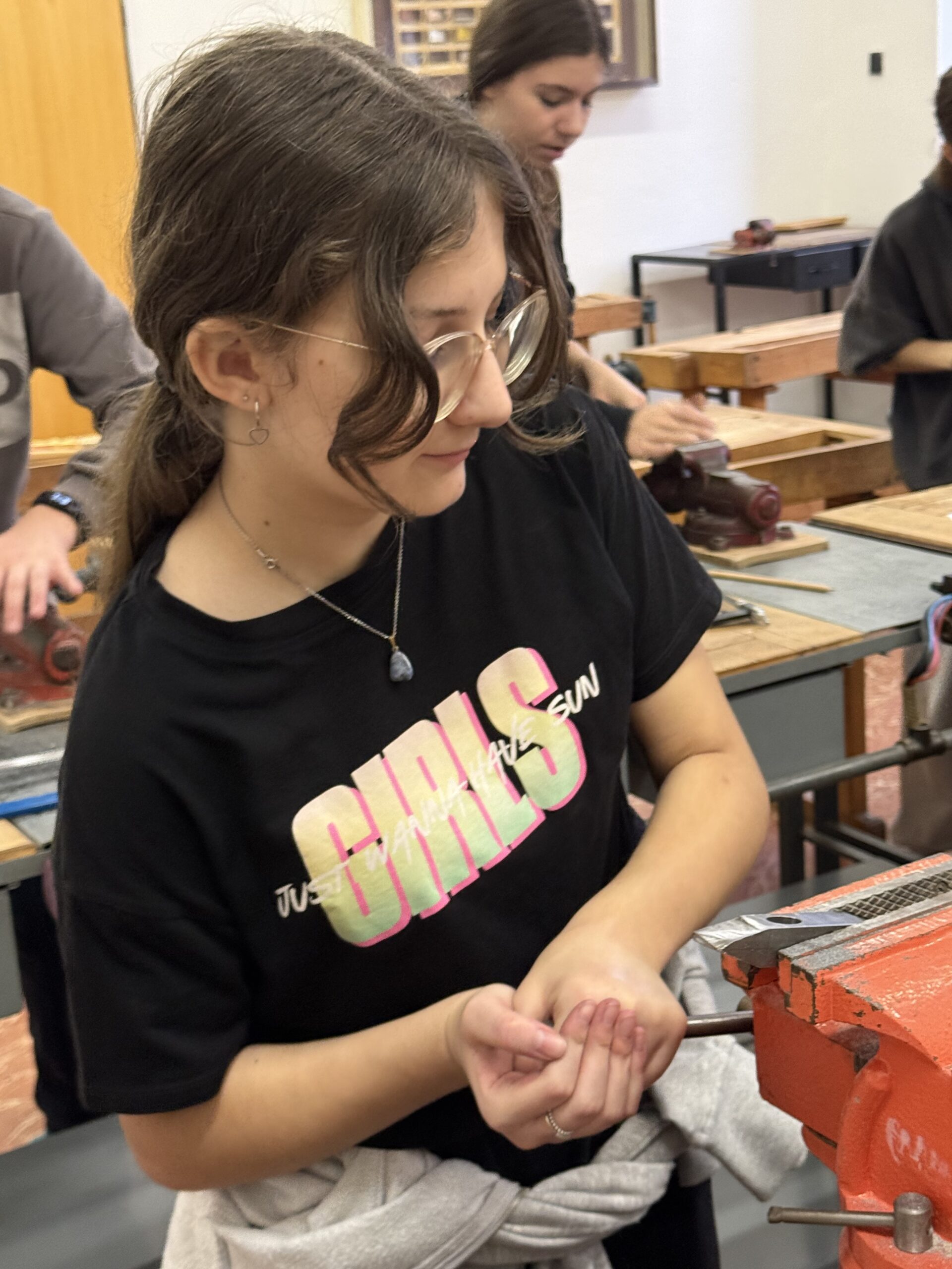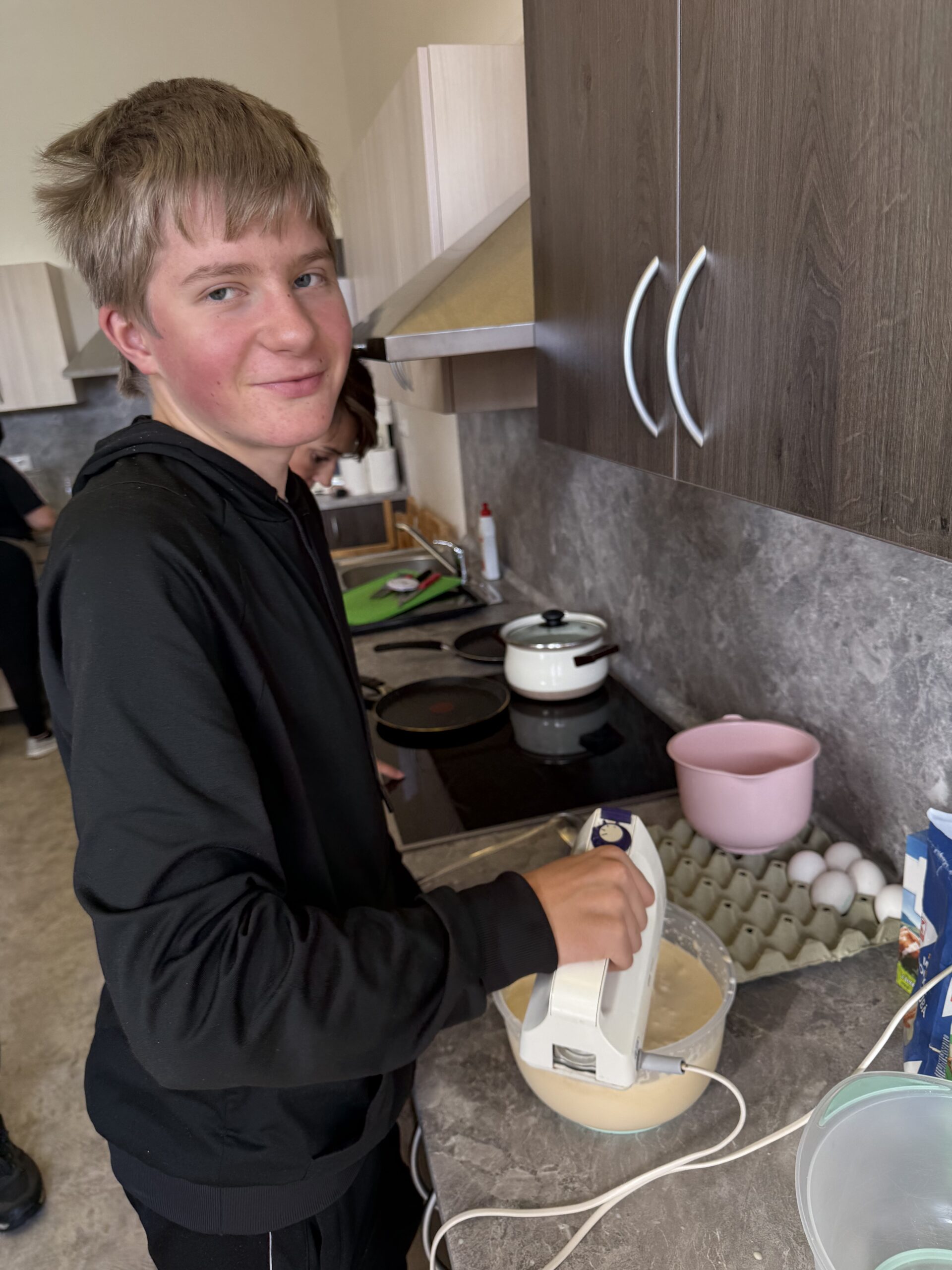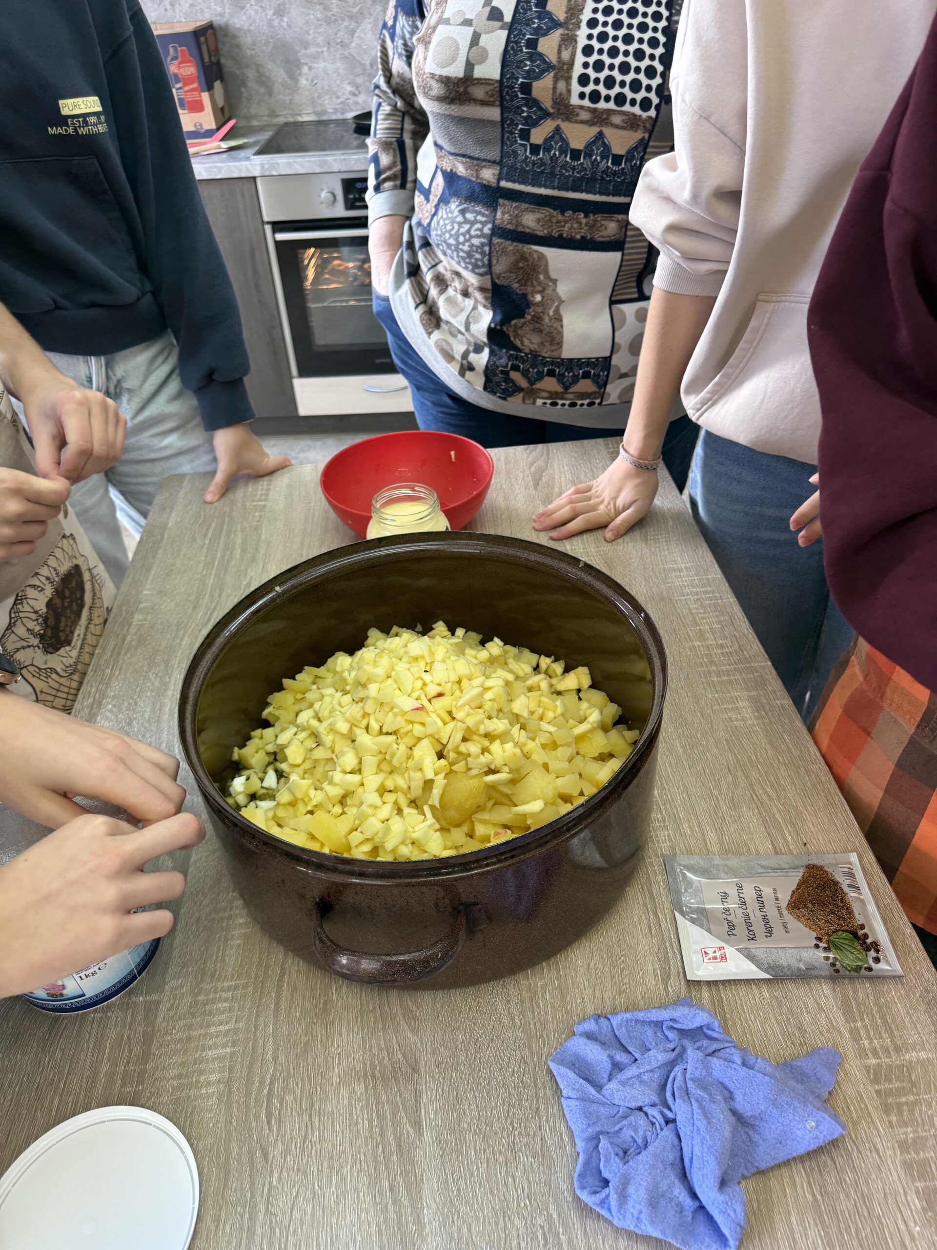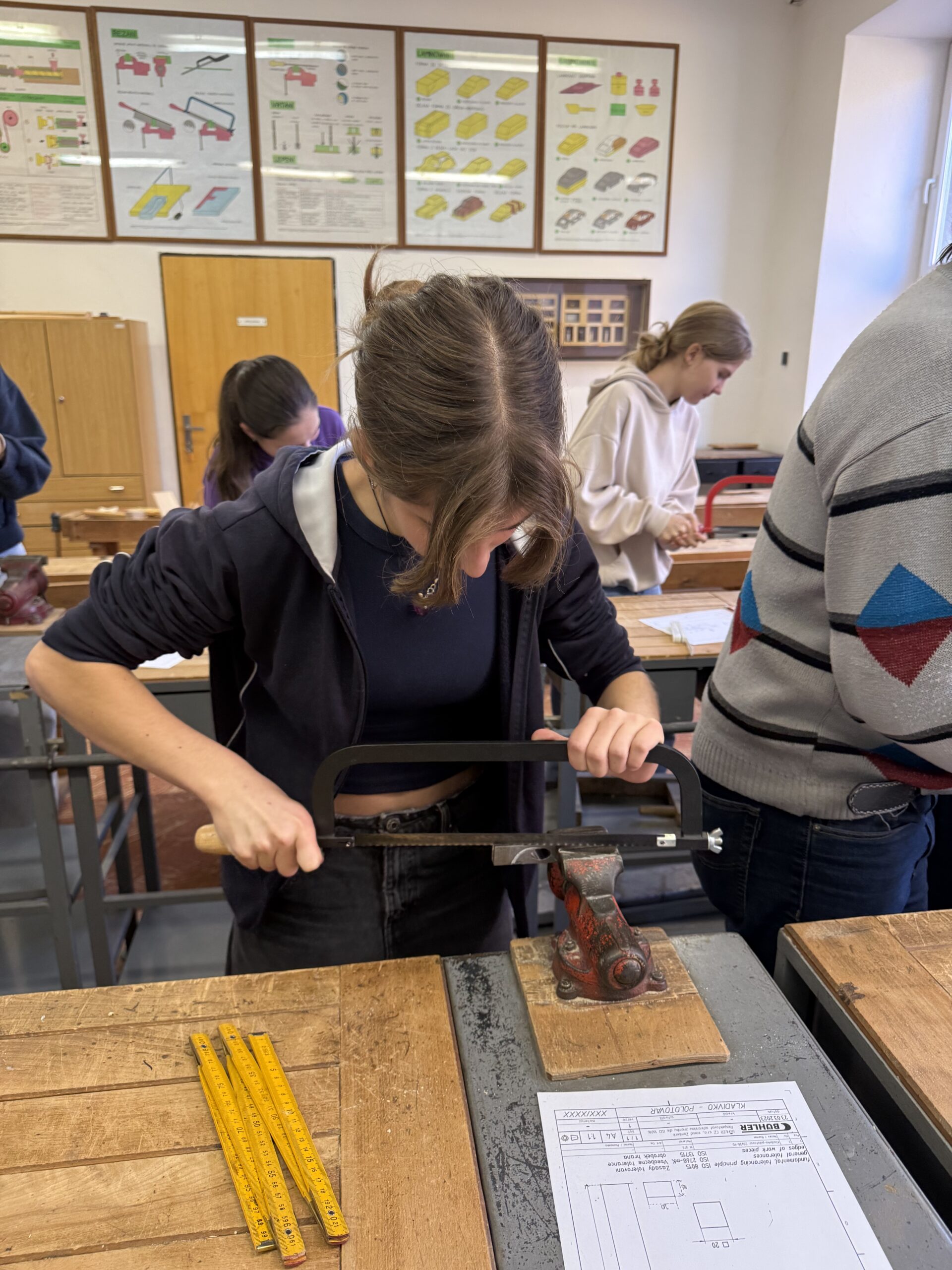 V úterý 4. 11. 2025 strávili studenti kvarty skvělý den na ZŠ ve Výprachticích, kde si vyzkoušeli práci rukama a nejen hlavou! Věnovali se práci s hlínou, kde si každý dle své fantazie vytvořil originální výrobek, často i jako malý dárek pro své blízké. Dílna s kovem a dřevem ukázala, že od práce mohou bolet i ruce, ale výsledek stál za to. Každý si vyrobil svoje kladívko! Dopoledne bylo završeno společnou přípravou oběda. Na menu bylo kuře s bramborovým salátem a jako sladká tečka palačinky.