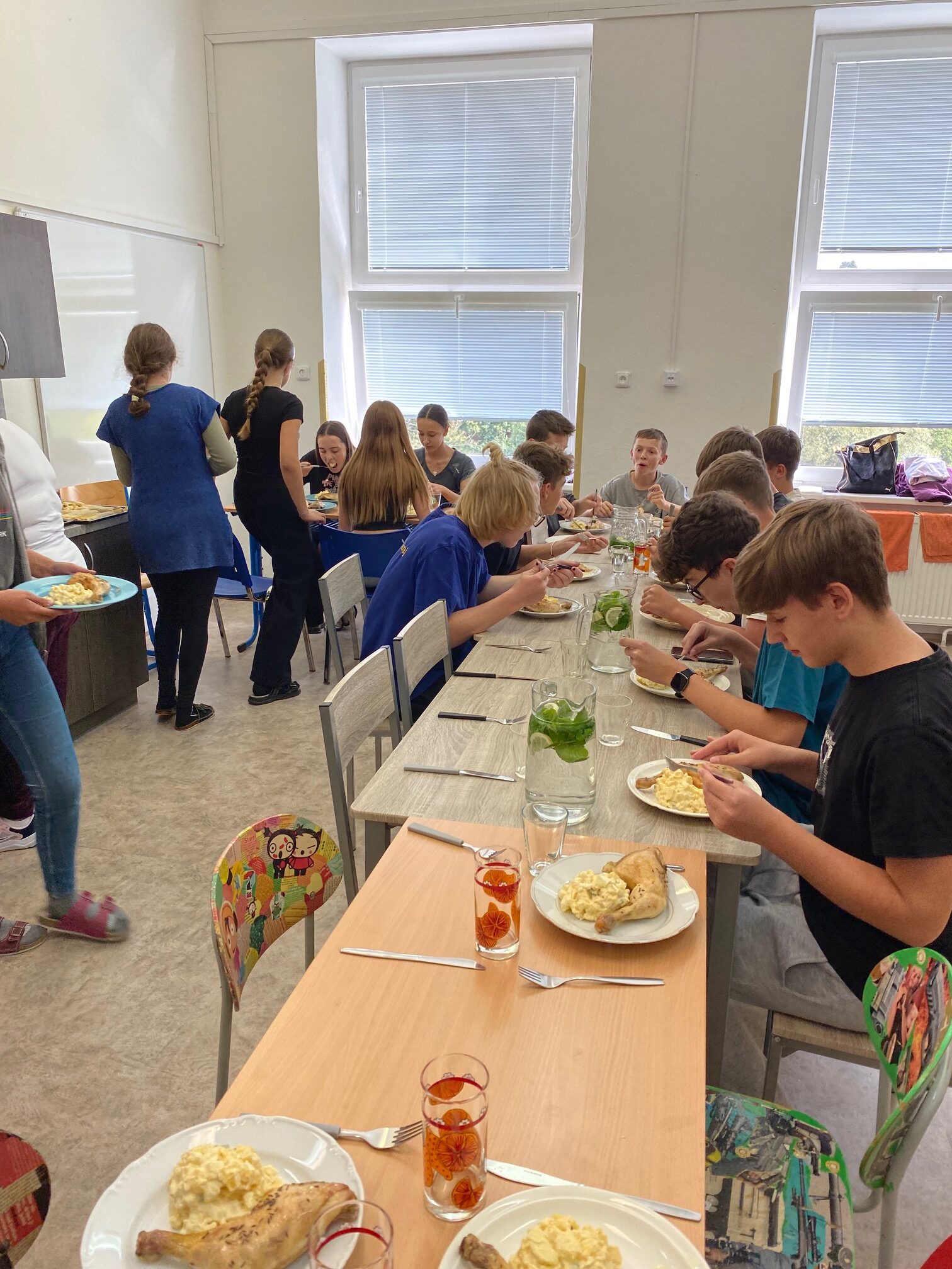 Vyzkoušeli jsme si práci s keramickou hlínou, v dílně vyrobili stojánek na mobil a uvařili jsme si dobrý oběd. Exkurzi jsme zakončili prohlídkou budovy a poznali tak prostředí jiné školy než té naší.