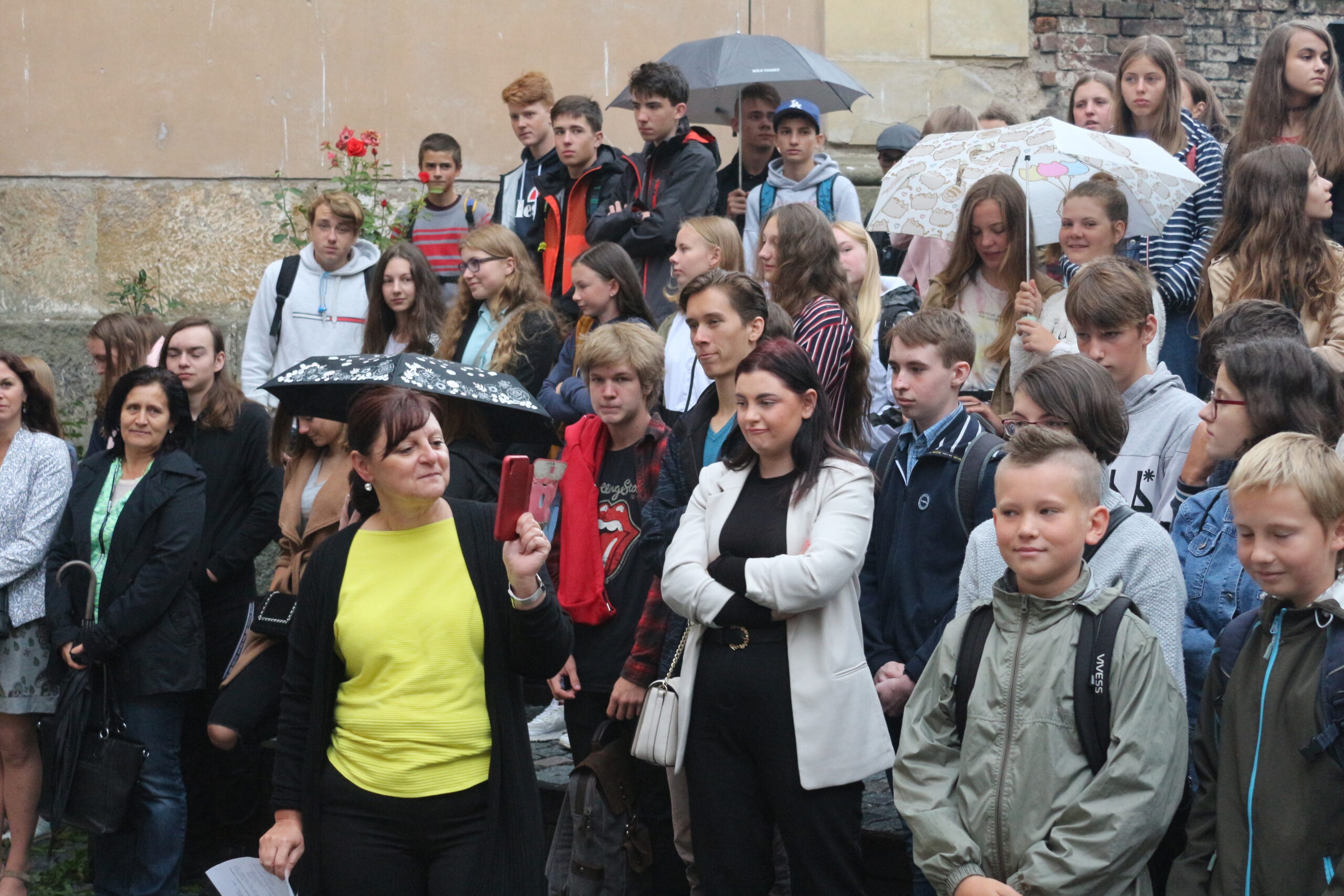 Tentokrát jsme opět změnili místo setkání po prázdninách, abychom společně zahájili školní rok 2020/2021. Sešli jsme se na nově upraveném zámeckém nádvoří (dvoreček se neříká) a vyzkoušeli jsme tak, zda se tam vůbec vejdeme. Počasí sice pošmourné a trochu umorousané nás zase až tak moc nepromáchalo, takže jsme byli celkem v pohodě.